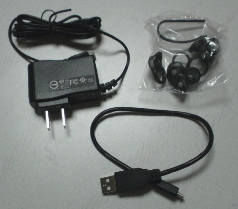 充電用ACアダプタ、USB充電器、イヤーフック2種類、イヤージェル4種類(2個ずつ)が付属。